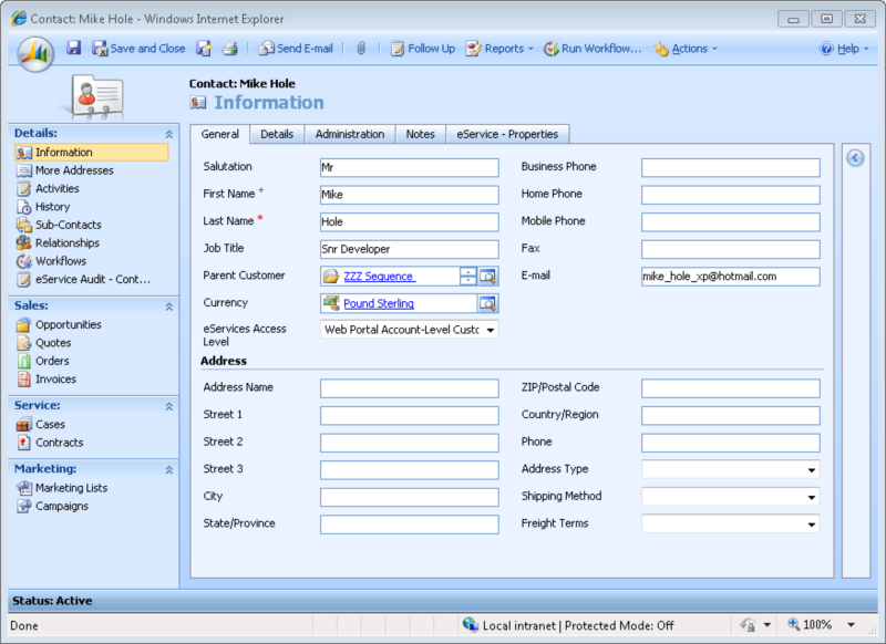 At Sequence the company where I work we make use of the eService accelerator this allows our customers to log cases via an extension to our web site. For this series of posts I am going to create a new tab in the contact entity screen that will display details of the contacts log in details that are stored in a separate ASP.NET authentication database.
