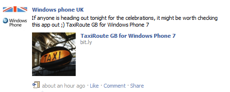 Along with the application listing the marketing guys at Microsoft also spread the word socially via Windows Phone UK: