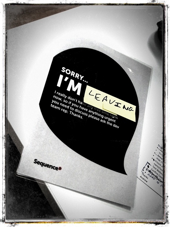 Good luck matey. When I first started at Sequence, totally green, you were the person I spent most of my time working with. Contrary to popular opinion I remember some good times 😉